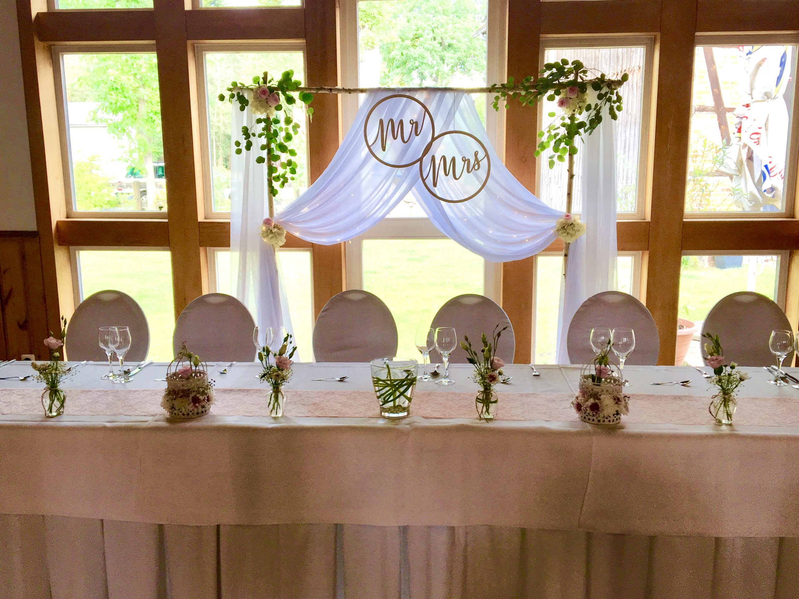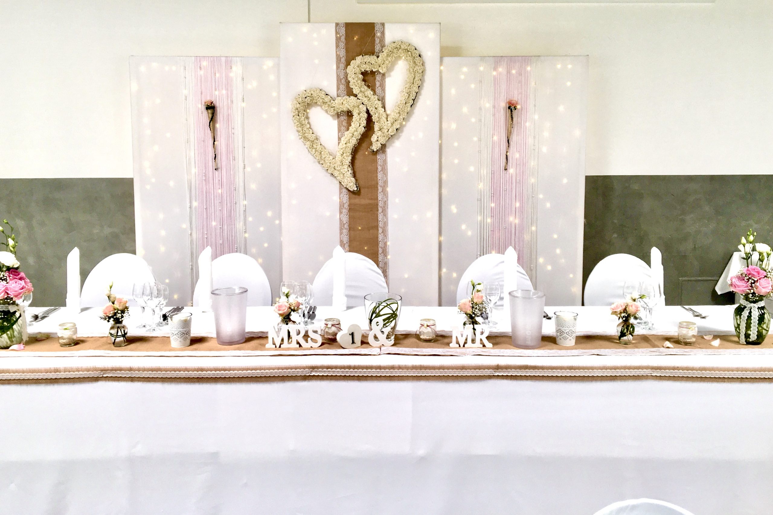 In dem Mittelpunkt eines festlich dekorierten Saales steht immer der Brauttisch. Hier ist eine kleine Auswahl an möglichen Dekorationen. Mein Sortiment erweitere ich fortlaufend, daher lass uns gemeinsam prüfen, welche Elemente das Passende sind.