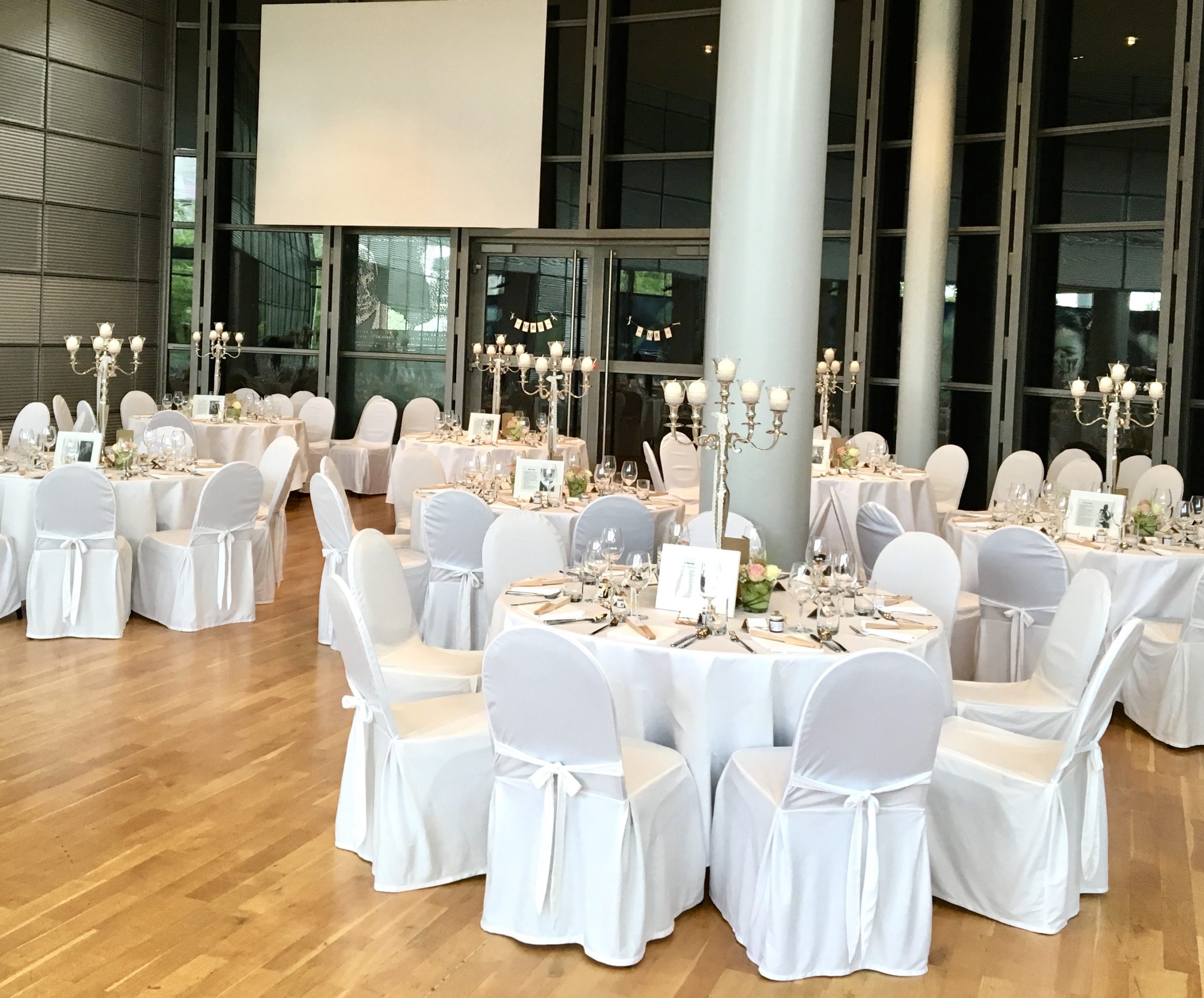 Aus jedem Raum lassen sich die jeweiligen Vorzüge betonen und ein festliches Ambiente schaffen. Es gibt verschiedene Stuhl Hussenarten, die werden an die Stühle angepasst. Stuhl Hussen Verleih 1,50 €.